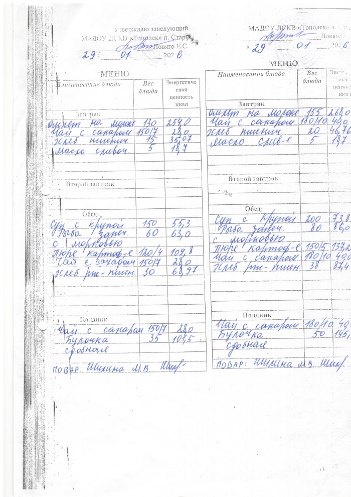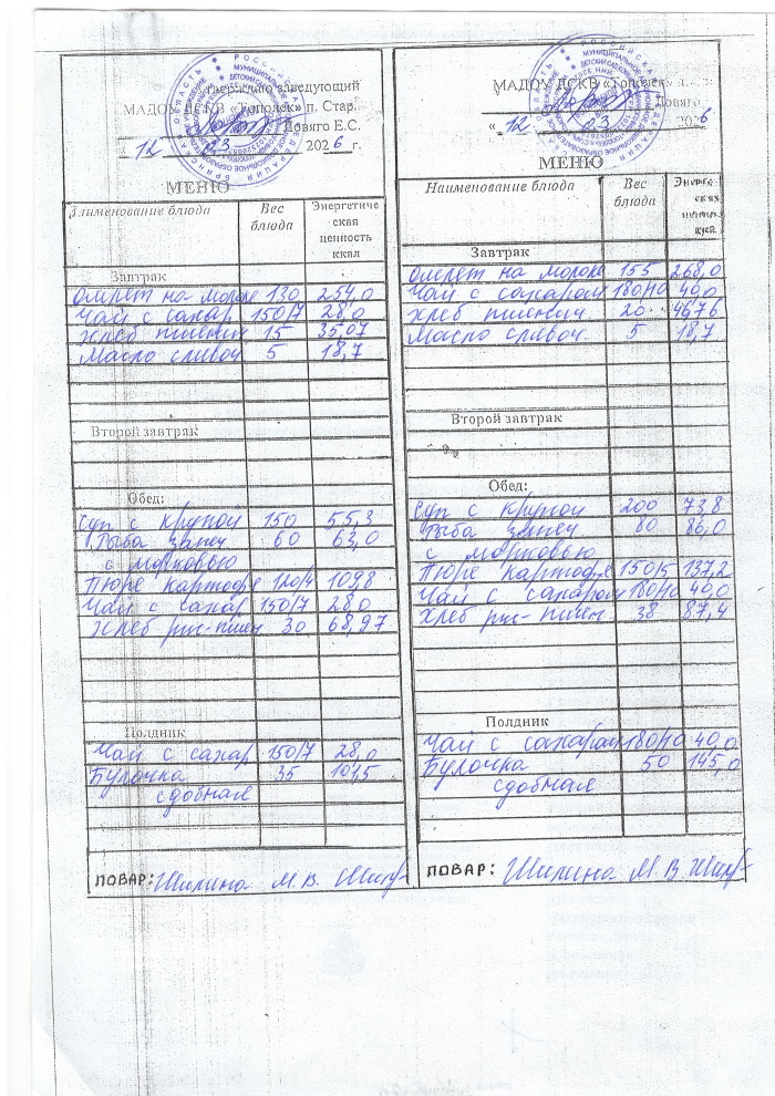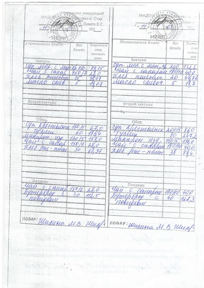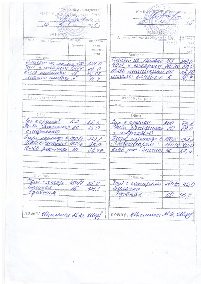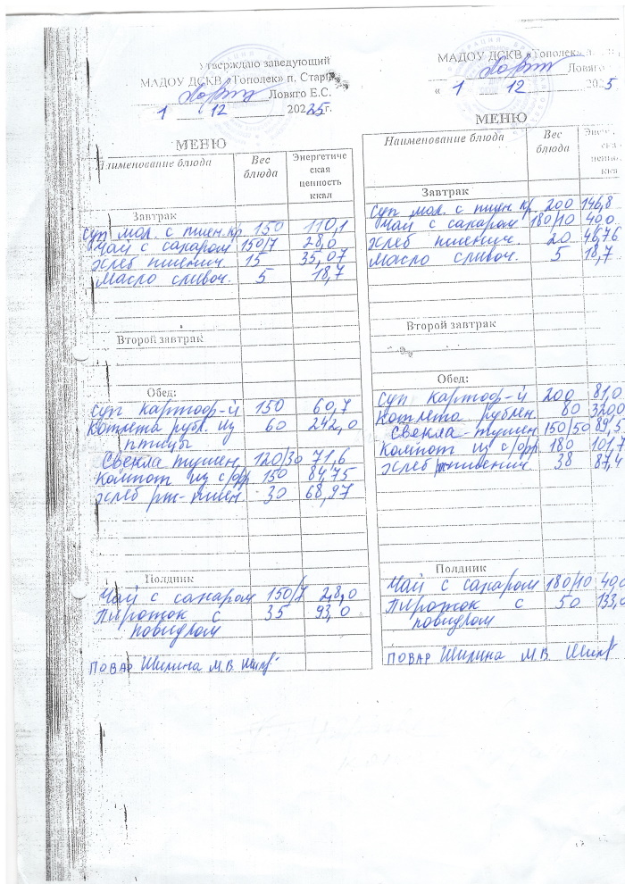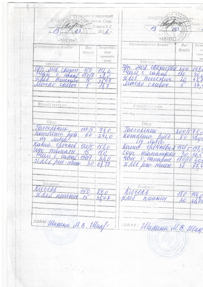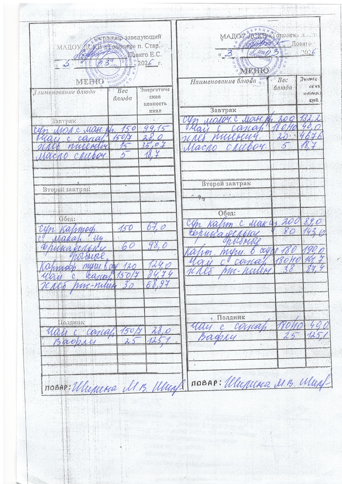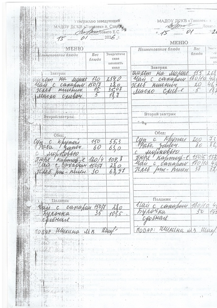 ОСНОВНОЕ МЕНЮ приготавливаемых блюд МАДОУ ДСКВ «Тополек» п. Старь осенне – зимний период. Возрастная категория 1 – 3 года, 3-7 лет; период: две недели