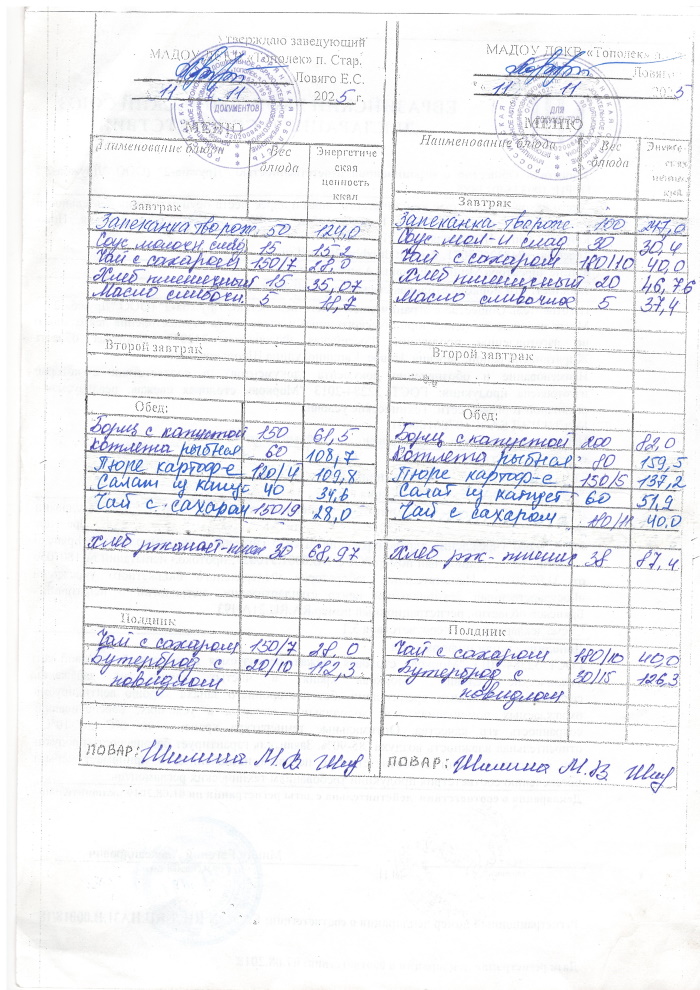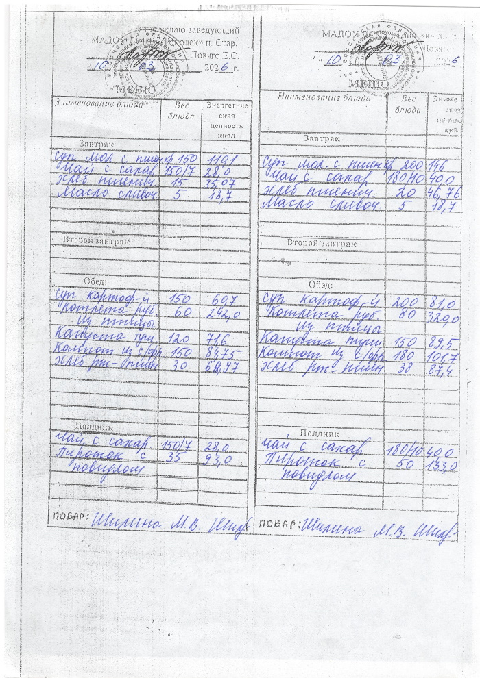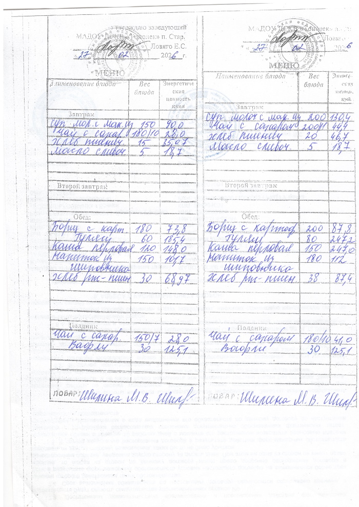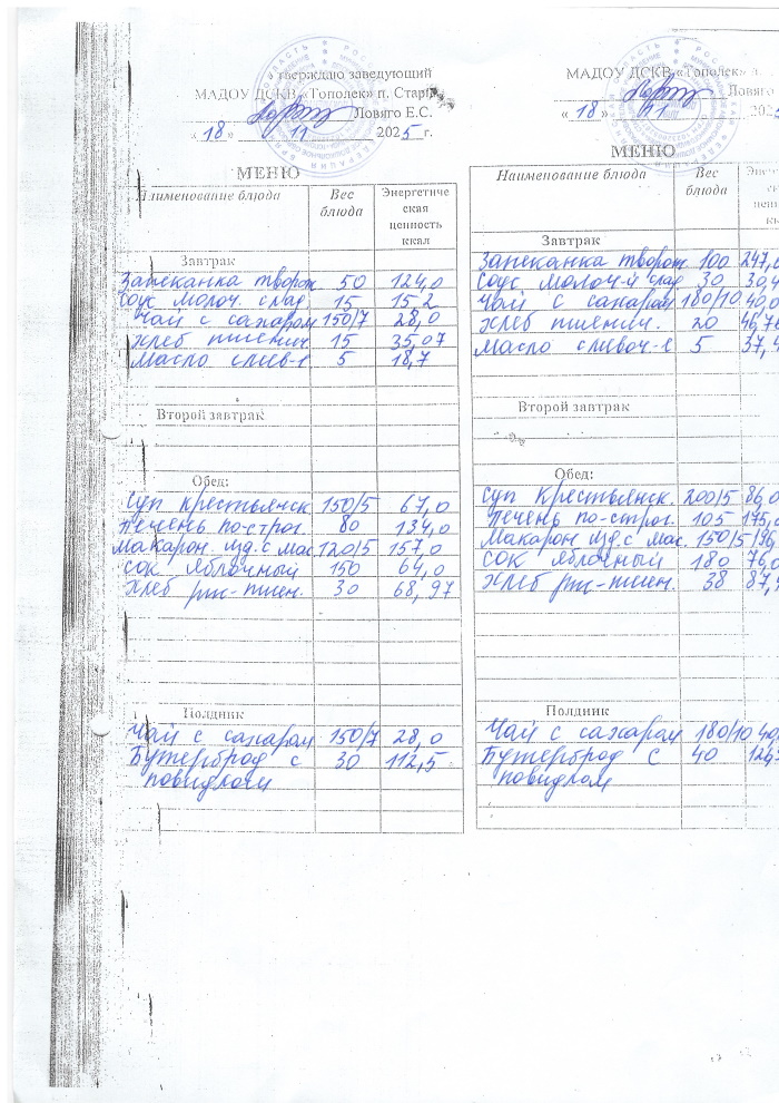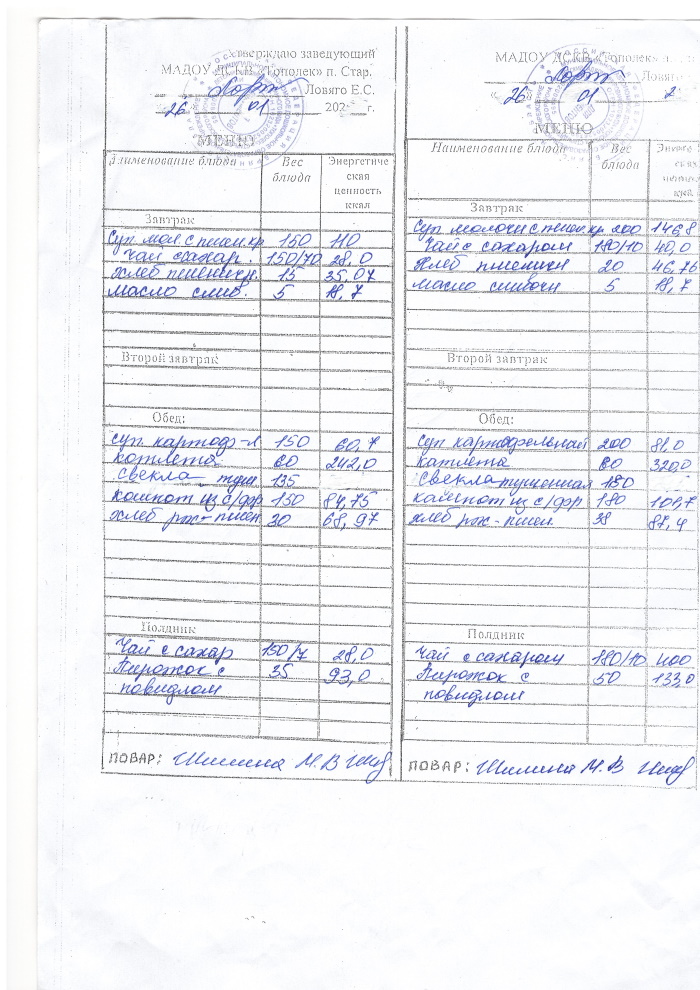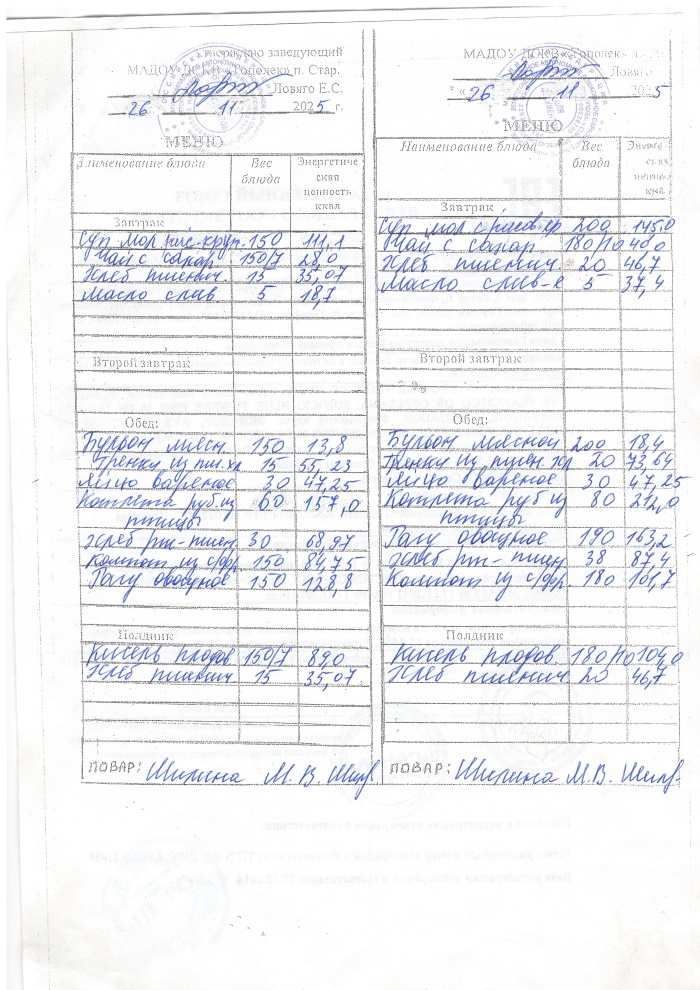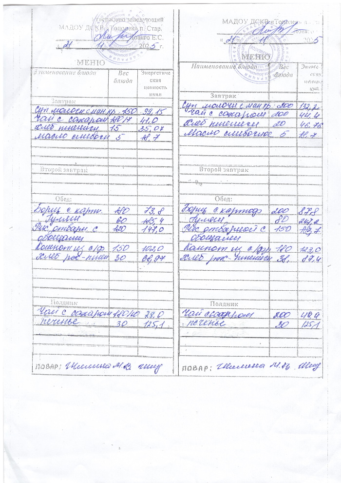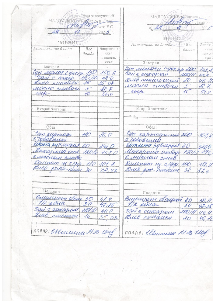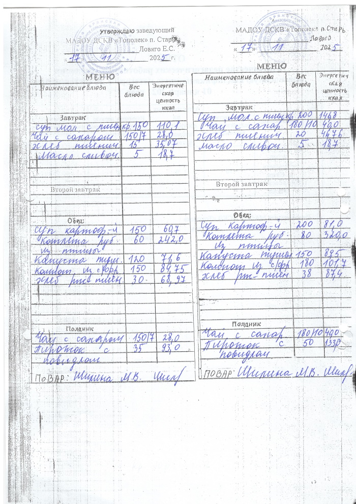 ОСНОВНОЕ МЕНЮ приготавливаемых блюд МАДОУ ДСКВ «Тополек» п. Старь осенне – зимний период. Возрастная категория 1 – 3 года, 3-7 лет; период: две недели