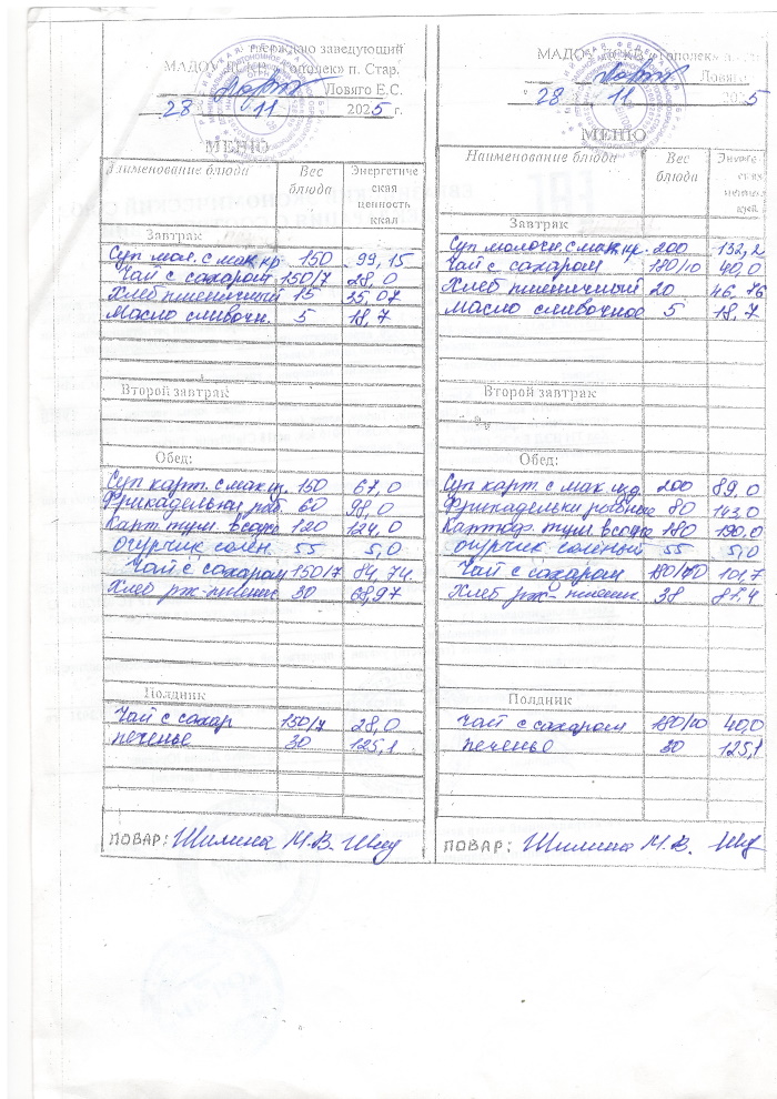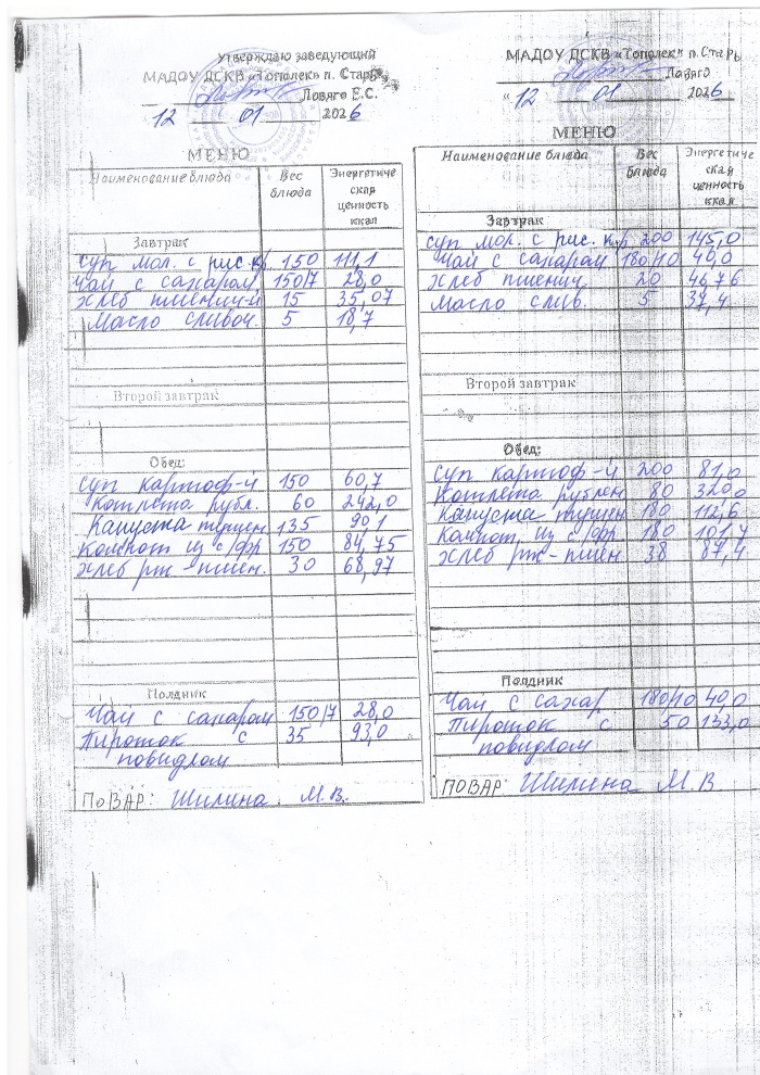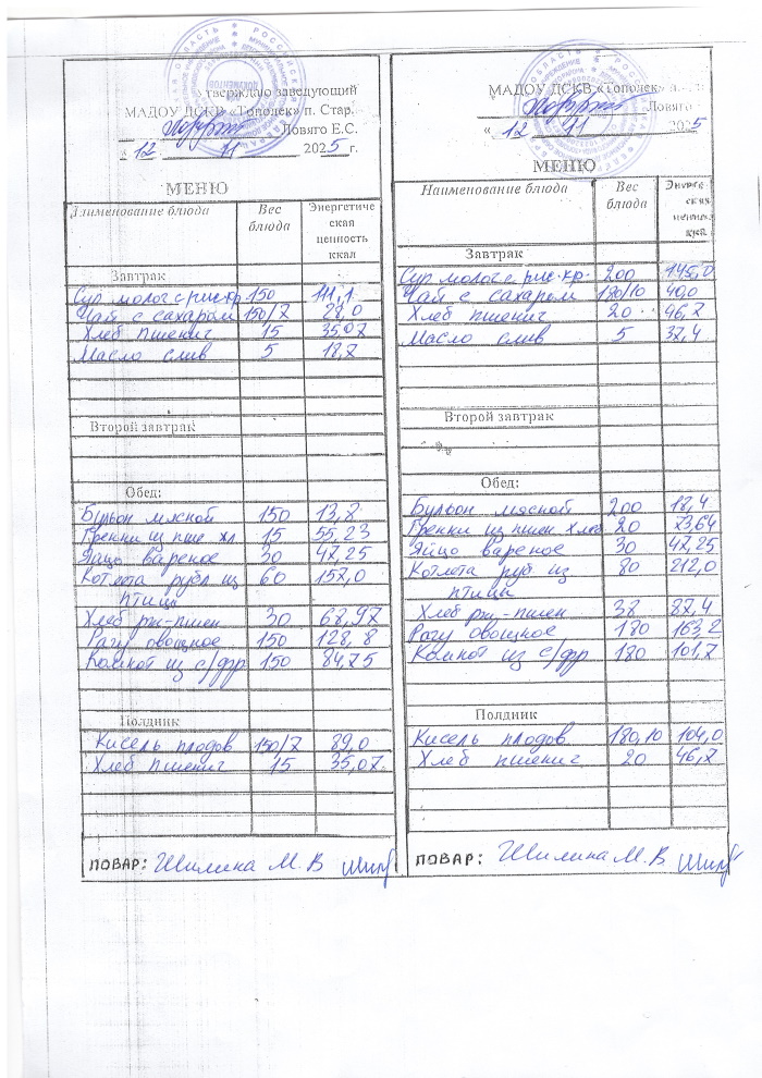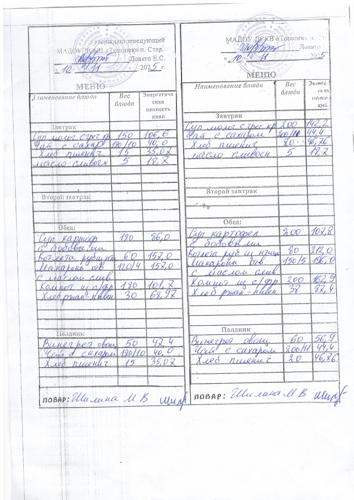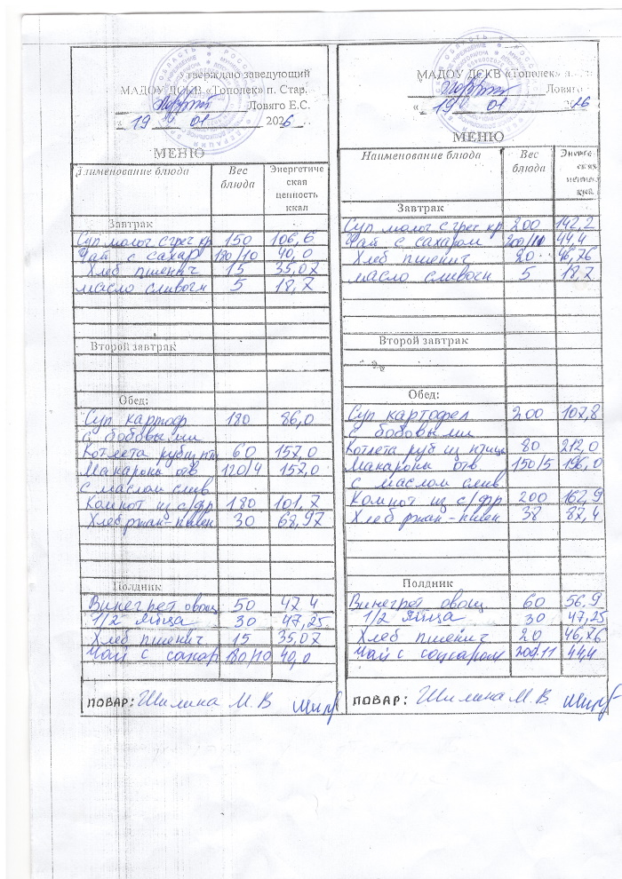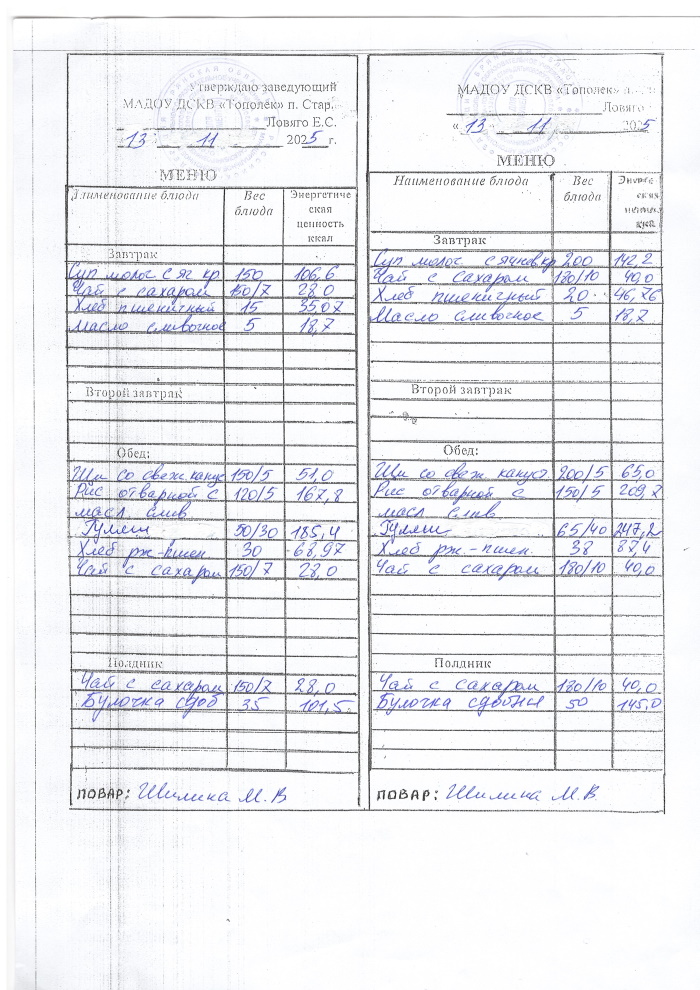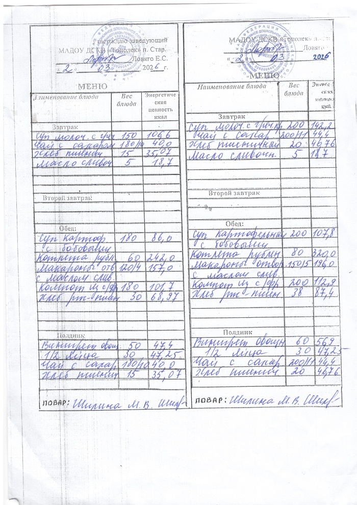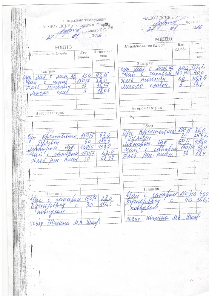 ОСНОВНОЕ МЕНЮ приготавливаемых блюд МАДОУ ДСКВ «Тополек» п. Старь осенне – зимний период. Возрастная категория 1 – 3 года, 3-7 лет; период: две недели