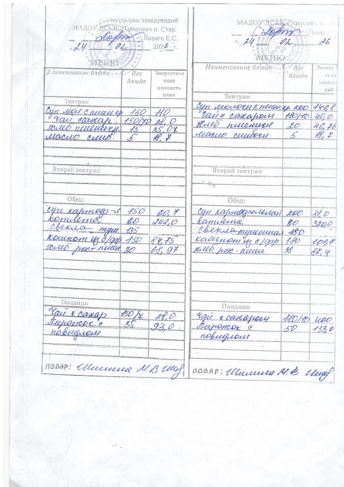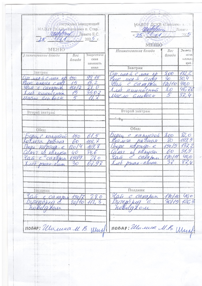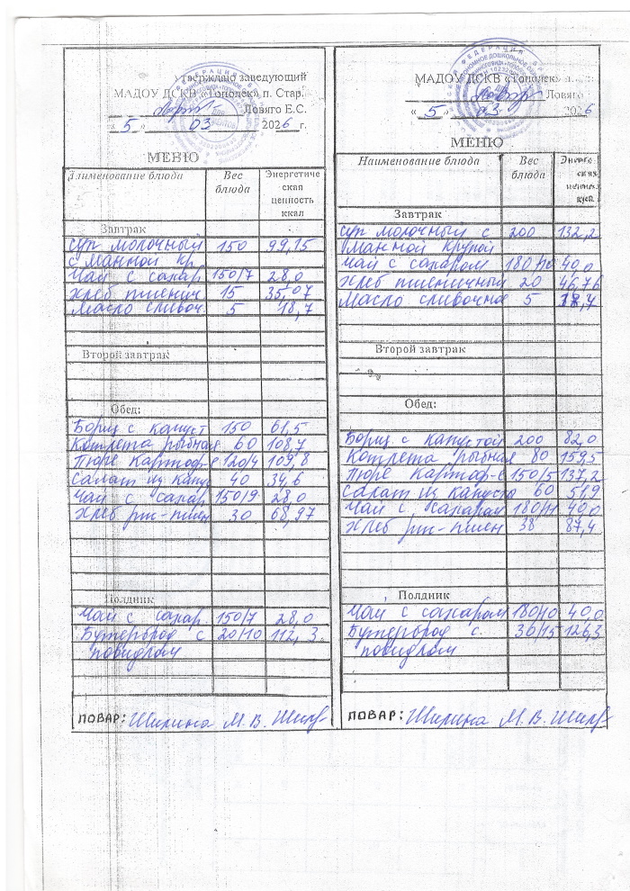 ОСНОВНОЕ МЕНЮ приготавливаемых блюд МАДОУ ДСКВ «Тополек» п. Старь весенне-летний период. Возрастная категория 1 – 3 года, 3-7 лет; период: две недели