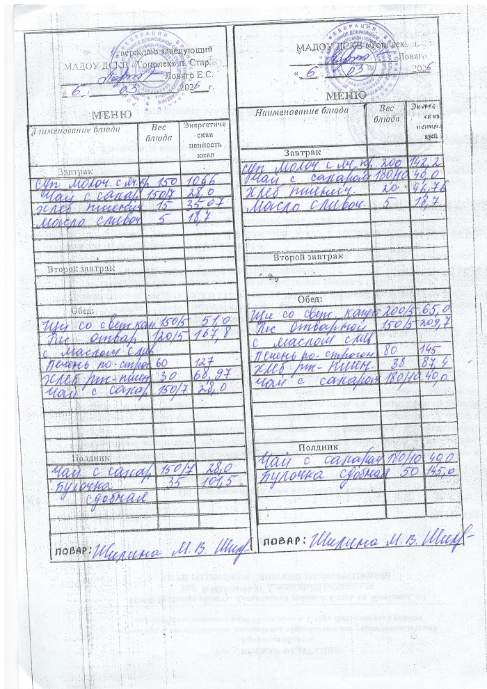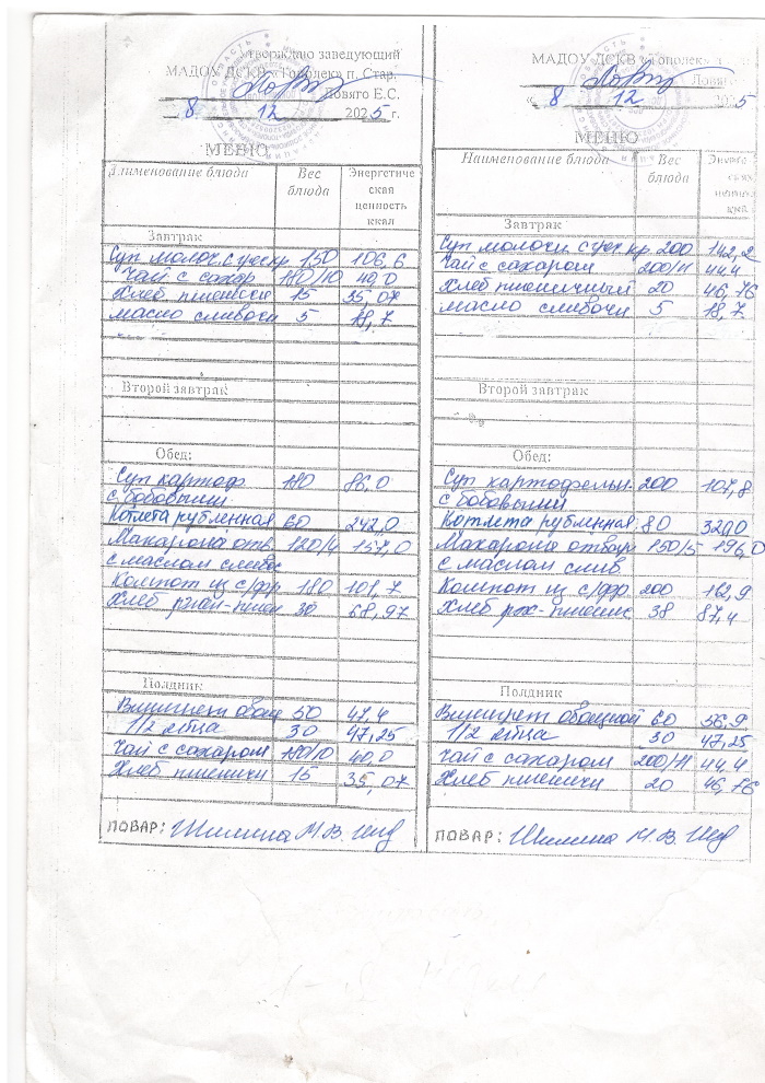 Меню на 2025-2026 учебный год