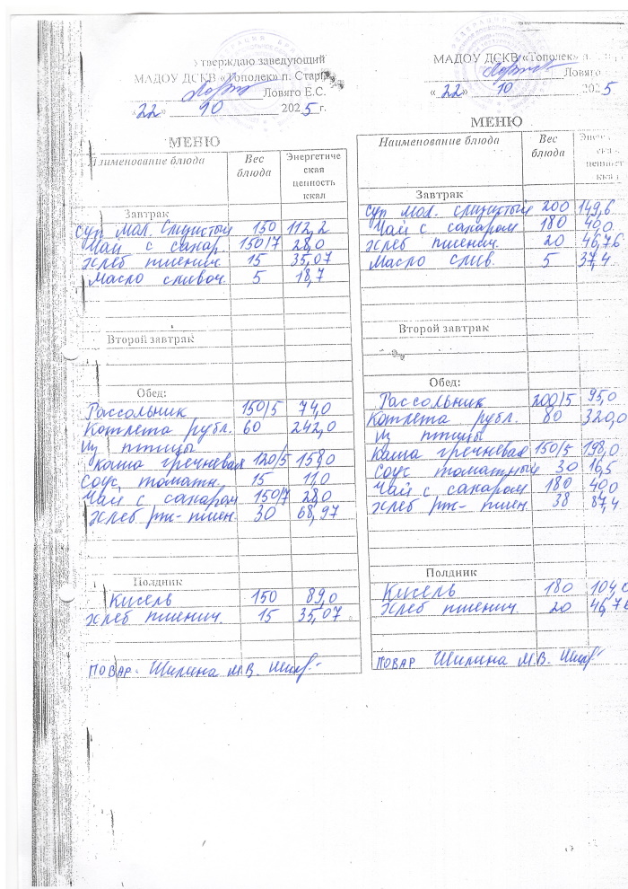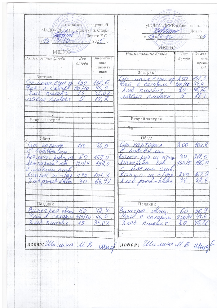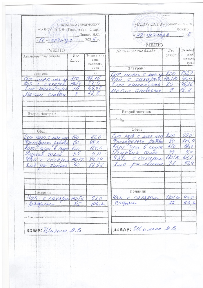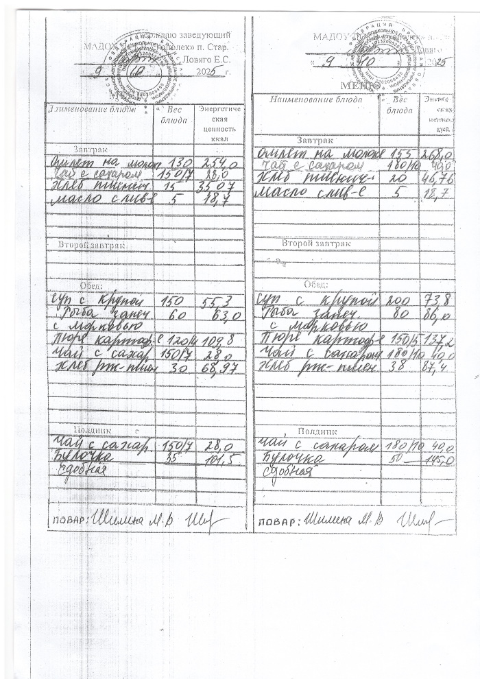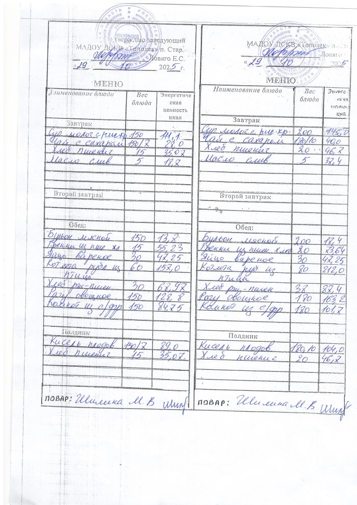 Информация о наличии диетического меню: нет (в связи с отсутствием данной категории воспитанников).