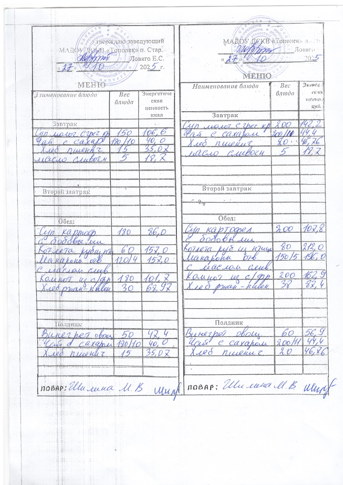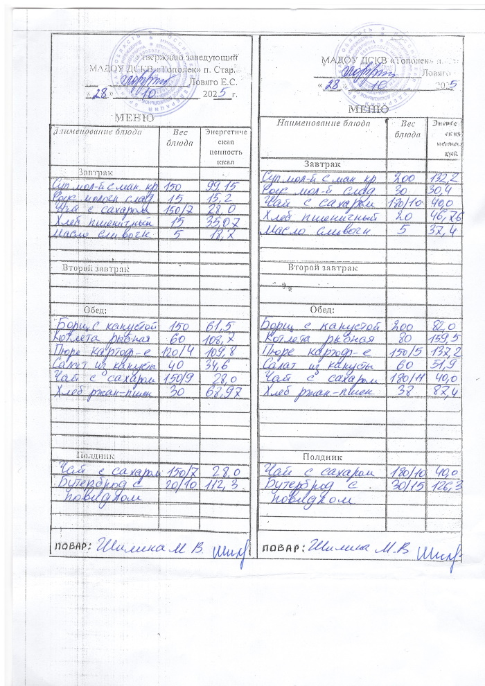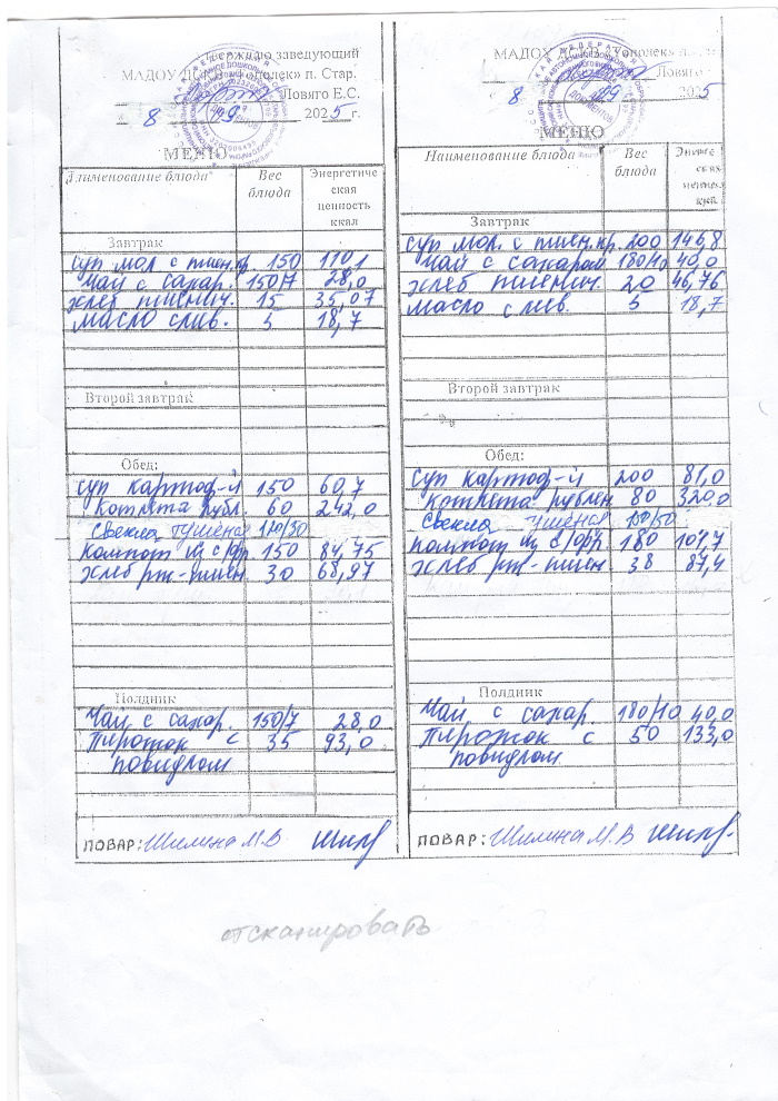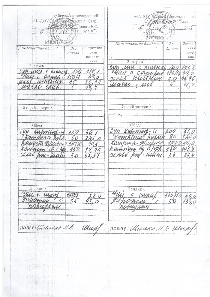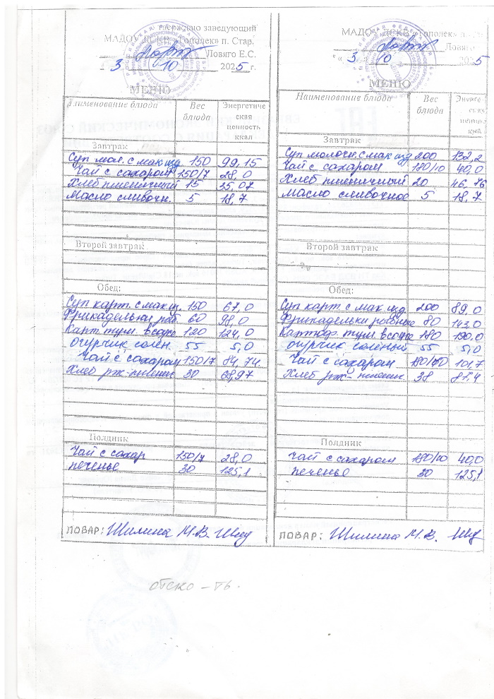 Информация о наличии диетического меню: нет (в связи с отсутствием данной категории воспитанников).