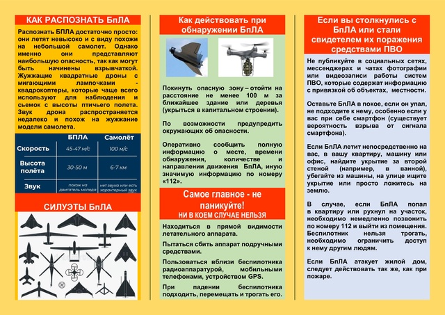 услышав звук летящего боеприпаса (ракеты) и последующего взрыва, необходимо немедленно лечь на землю и накрыть голову руками, такое положение снизит вероятность осколочных ранений;